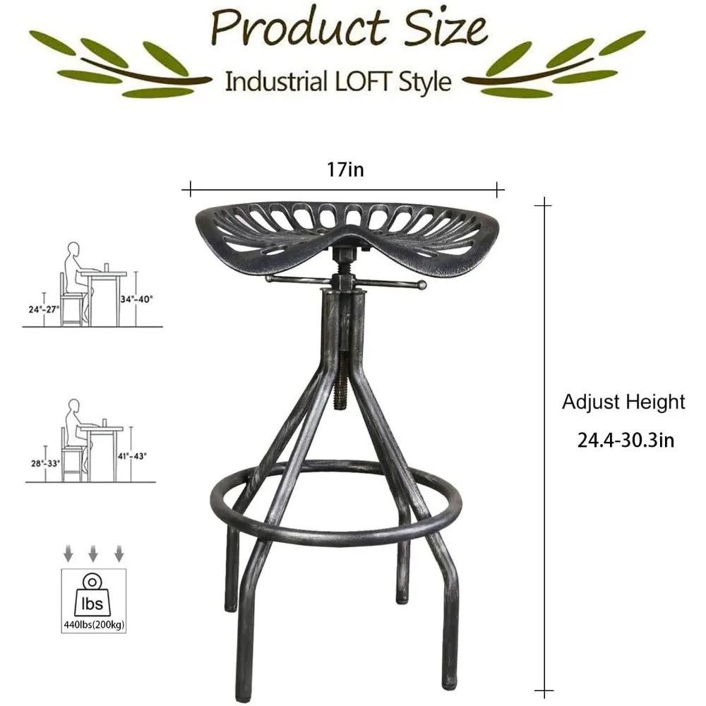 Bring timeless farm-inspired character into your home with our Industrial Metal Tractor Seat Bar Stool. Designed with a classic saddle-style tractor seat, this stool blends rugged cast iron strength with rustic farmhouse charm—perfect for kitchens, counter islands, home bars, and loft-style spaces.