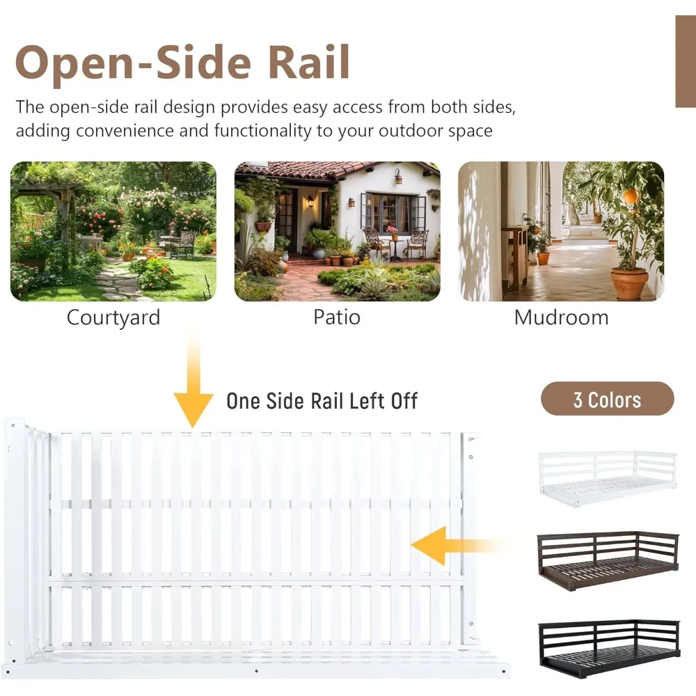 The minimalist open-side design allows fresh air and sunlight to flow freely, making it perfect for warm afternoons, reading, or napping outdoors. Supporting up to 350 lbs, it’s ideal for solo relaxation or cozy moments with a loved one. Its sturdy construction ensures long-lasting durability, while the natural wood and rope details blend beautifully with both modern and rustic outdoor spaces.