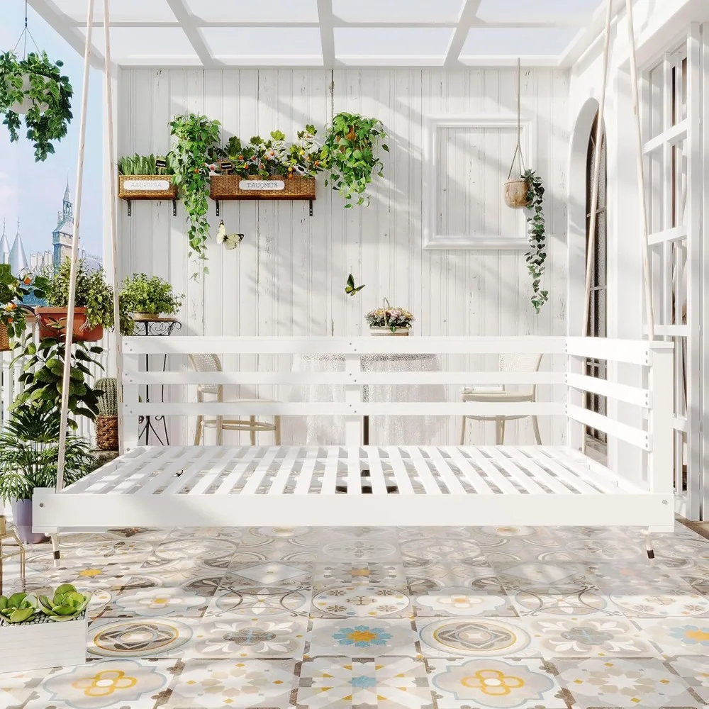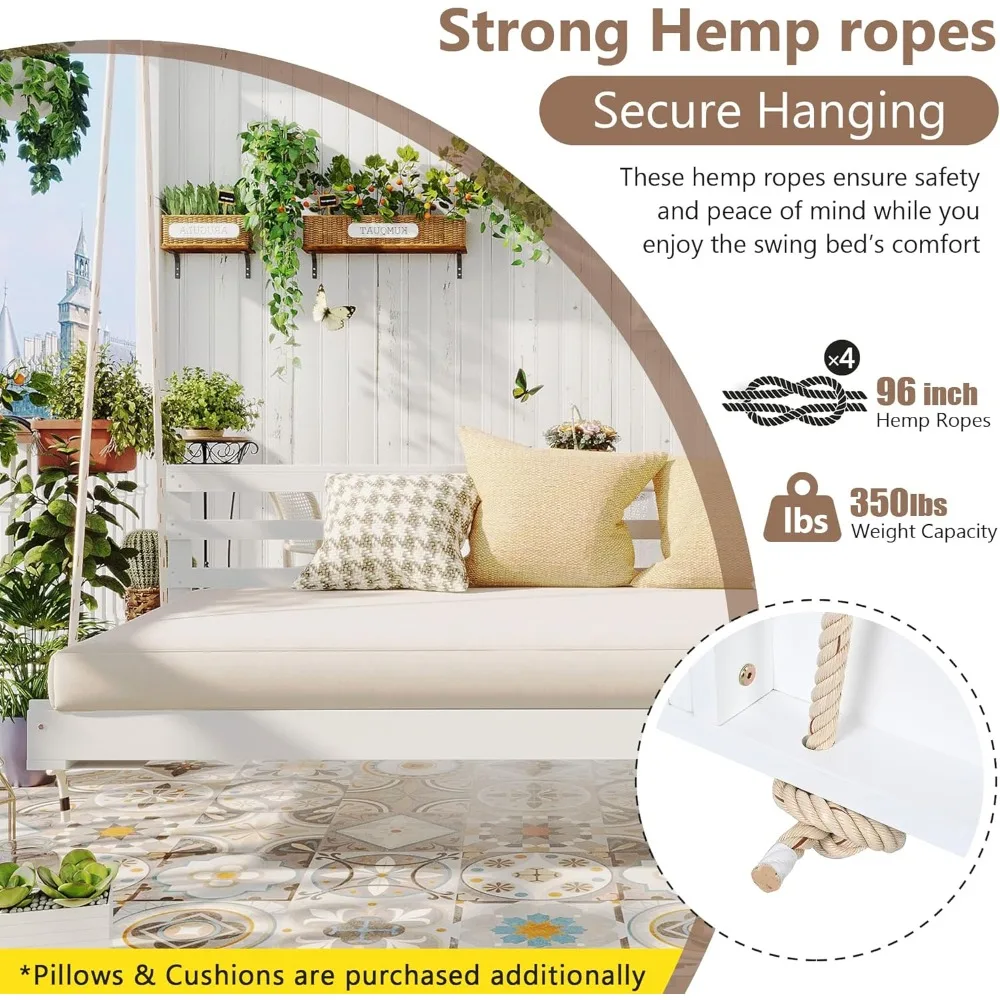 Relax in style and comfort with this Outdoor Porch Swing Bed, designed for patio, garden, or backyard lounging. Crafted from premium acacia wood and suspended with durable hemp ropes, this hanging bed combines natural elegance with rustic farmhouse charm.
