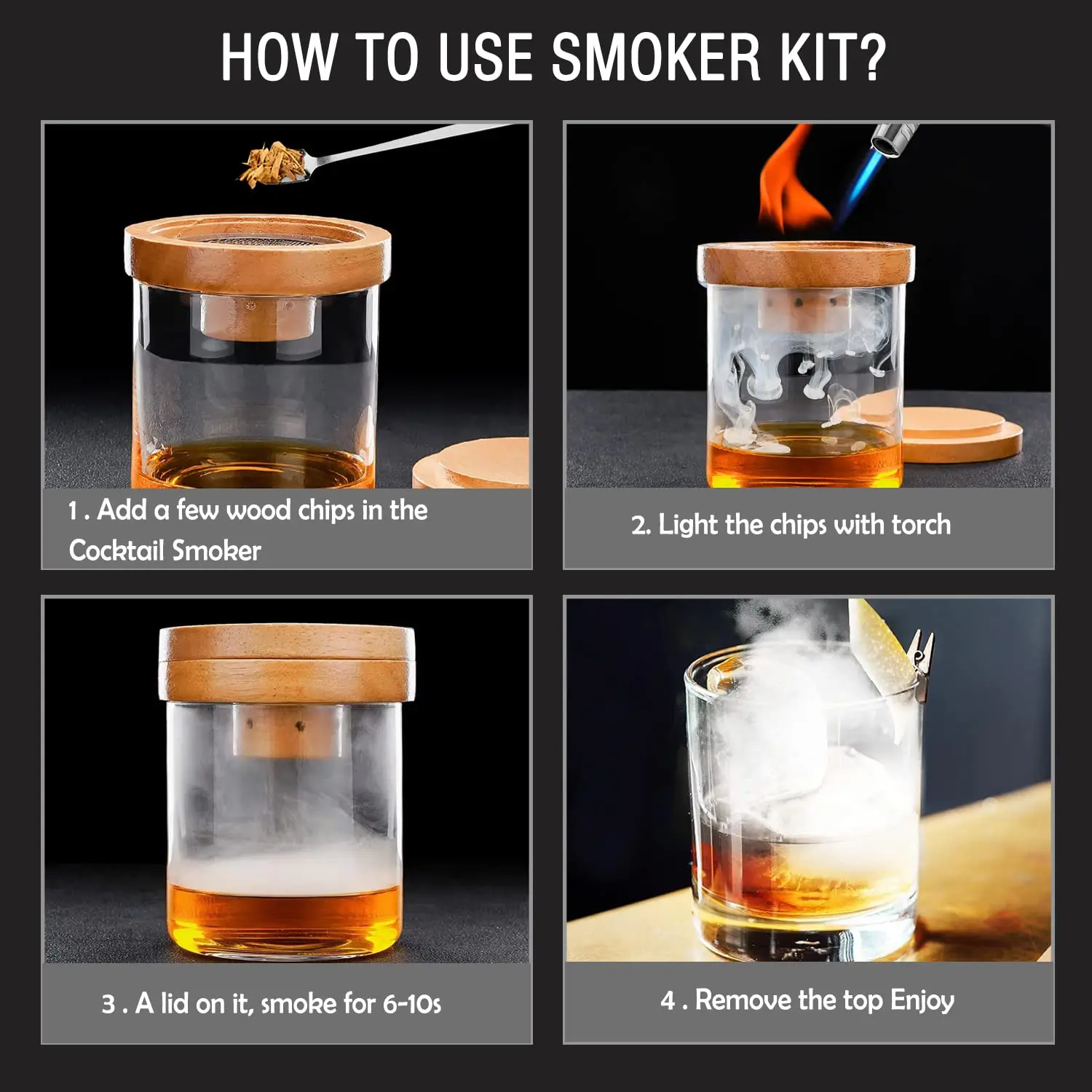 Simply place the smoker over your glass, add your favorite wood chips, and infuse your drink with smooth, aromatic smoke. Ideal for Old Fashioneds, Manhattans, bourbon, whiskey, or even cocktails and mocktails, this set transforms everyday drinks into something memorable and refined.